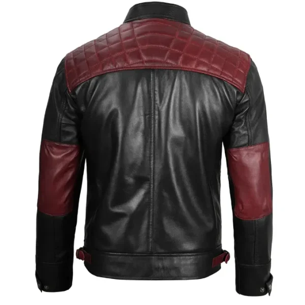 Material: Real Leather Internal: Soft Lining Front: Zipper Closure Collar: Stand Up Collar Color: Black and Maroon