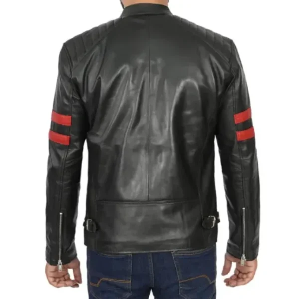 Material: Real Leather Internal: Soft Lining Front: Zipper Closure Collar: Stand Up Collar Color: Black