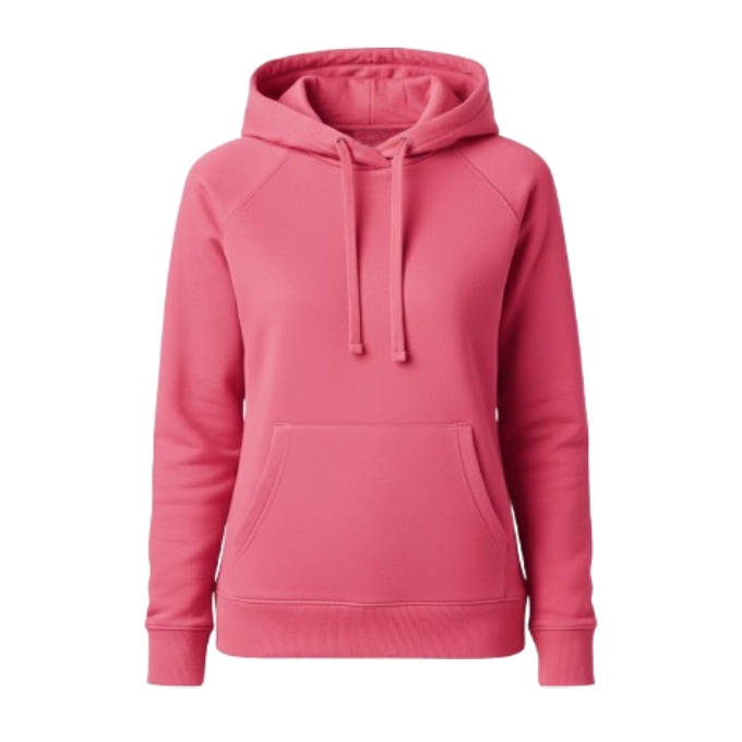 Material: Fleece Front: Pullover Closure Collar: Hooded Collar Pockets: Kangaroo Pocket Cuffs: Rib Knit Cuffs Color: Pink